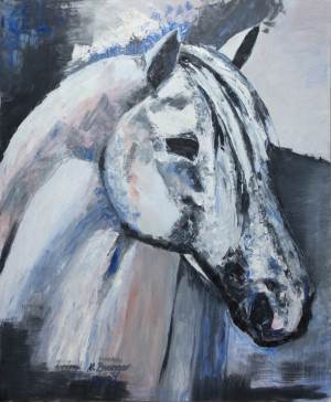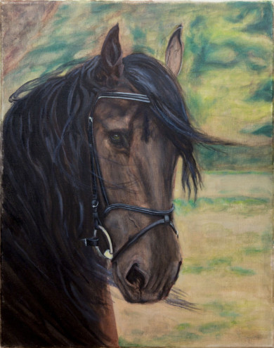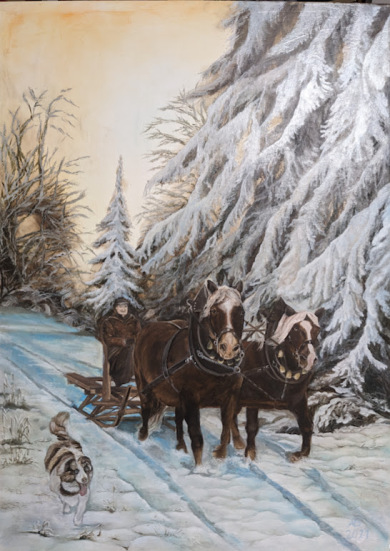 Schlittenfahrt mit Hexe und Hera, Ölfarben auf Leinwand, 50 X 70