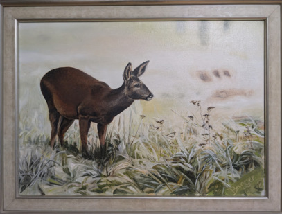 Reh im bereiften Winterwald, Ölfarben auf Leinwand, 50 X 70