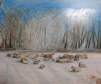 Schafherde im Lonetal, Ölfarben auf Hartfaserplatte, 50 X 40